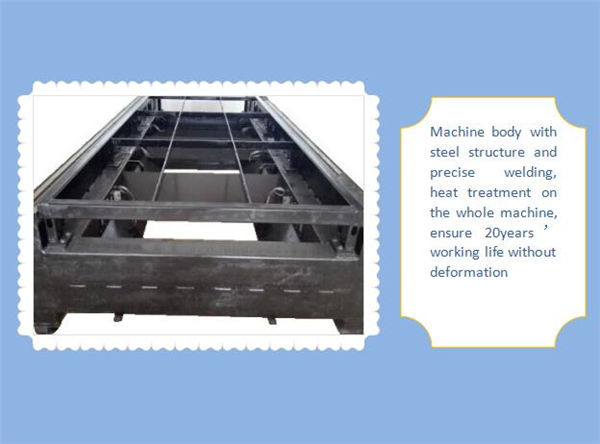 1. Tijelo našeg stroja s čeličnom konstrukcijom od 8 mm, termičkom obradom od 600,, precizno zavarivanje, kako bi se osiguralo 20-godišnje korištenje bez deformacija.