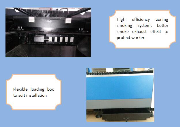 | Ime:Precizni linearni vodiči Napredni sustav rezanja, laserski pogon i servo kretanje savršeno odgovaraju jedni drugima, uvezeni sustav visoke preciznosti zupčanika i pogonskog sustava, dvostruki radni stol za zamjenu, kako bi se osigurala veća brzina i preciznost obrade. | |
