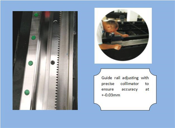 | Ime:AC servo motor i vozač Uvoženi servo motor (osa Y koju pokreću dva servo motora) zajedno s sofisticiranim planetarnim reduktorom osigurava stabilan, precizan i pouzdan pogon. | |