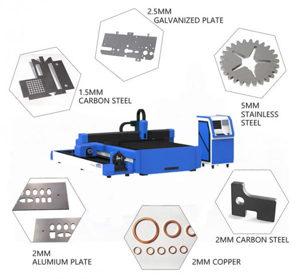 * Posebno se koristi za rezanje čelika od 0,5 do 6 mm, nehrđajućeg čelika od 0,5 do 5 mm, pocinčanog čelika, elektrolitičkog pocinčanog čeličnog lima, silikonskog čelika i drugih vrsta tankih metalnih limova.1000 W može rezati aluminij od 3 mm i bakar od 2 mm.